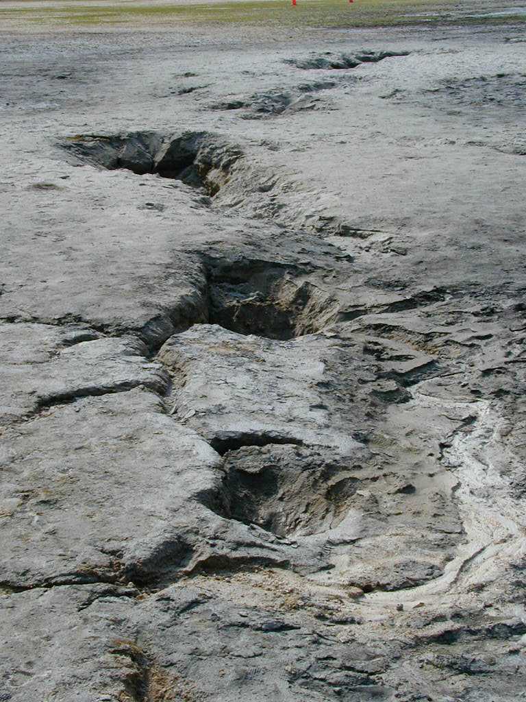広島市西区 観音新町三菱重工グランド2 液状化跡 噴砂孔が大きく、深いのが特徴。 |