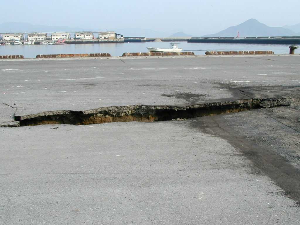 広島市西区 草津港3 岸壁エプロン背後の亀裂 |