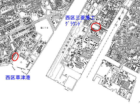 広島市西区 観音新町三菱重工グランド1 液状化跡 噴砂孔が大きく、深いのが特徴。 |