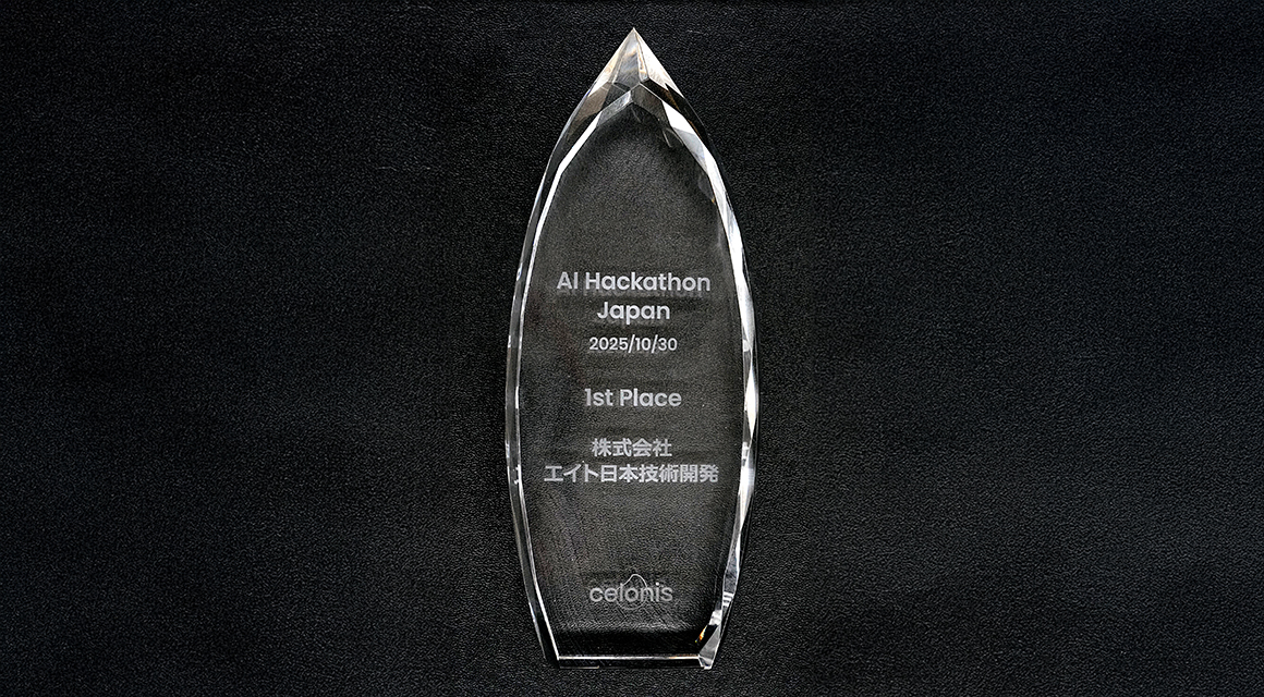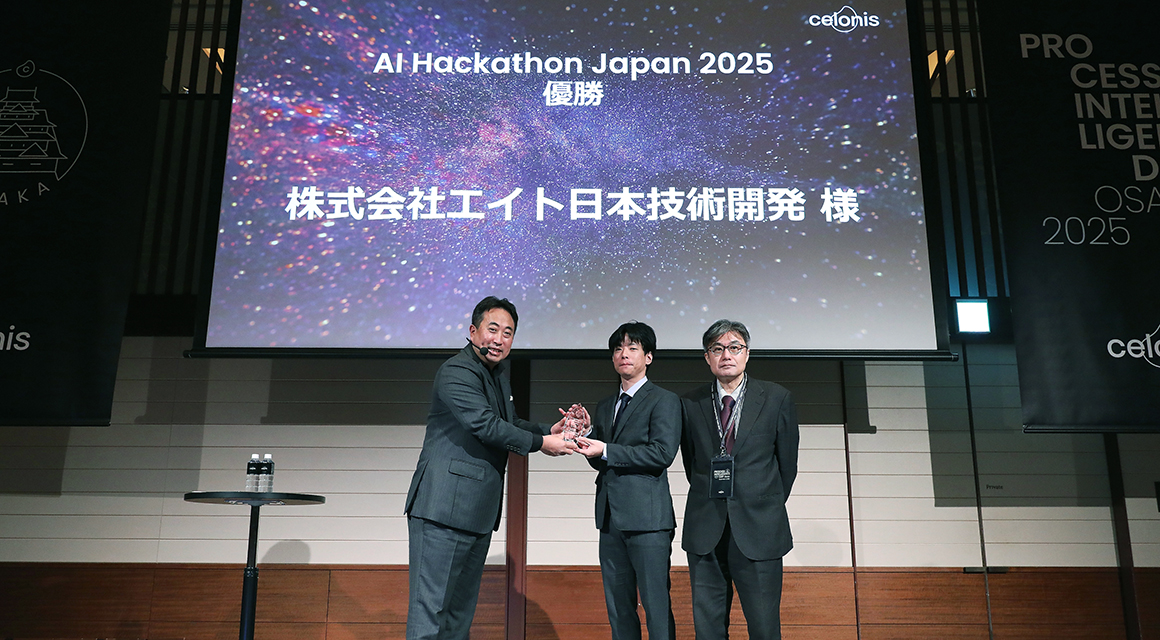 2025年10月30日(木)、東京で開催されたCelonis株式会社主催の「AI Hackathon Japan 2025」で、株式会社エイト日本技術開発(EJEC)プロセスイノベーション本部の鈴木をリーダーとするチームが優勝しました。