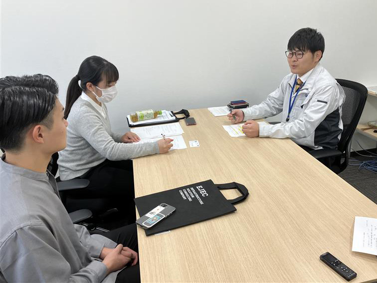 愛媛大学農学部の学生が株式会社エイト日本技術開発(EJEC)の中国支社に来社され、同学部のOBであるEJECの若手社員がインタビューを受けました。