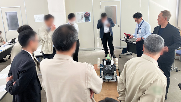 勉強会の内容は、以下の3つのテーマについて点検ロボットなどの実機にも触れながら活用場面などを紹介するもので、講義終了後、活発な質疑応答や意見交換が行われました。