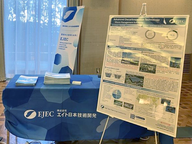 日伯非公式会合は、日本とブラジルが共同議長を務め、2002年から毎年東京で開催している気候変動に関する非公式会合です。各国の気候変動交渉の実務担当者(首席交渉官級)が率直な議論を行うことを目的とした会合です。 パネル展示では、当社の事業概要とあわせて、国内外で当社が調査・計画・建設・運営の各段階で携わった事例を含む、脱炭素に寄与する日本の最先端施設や技術支援の紹介を行いました。