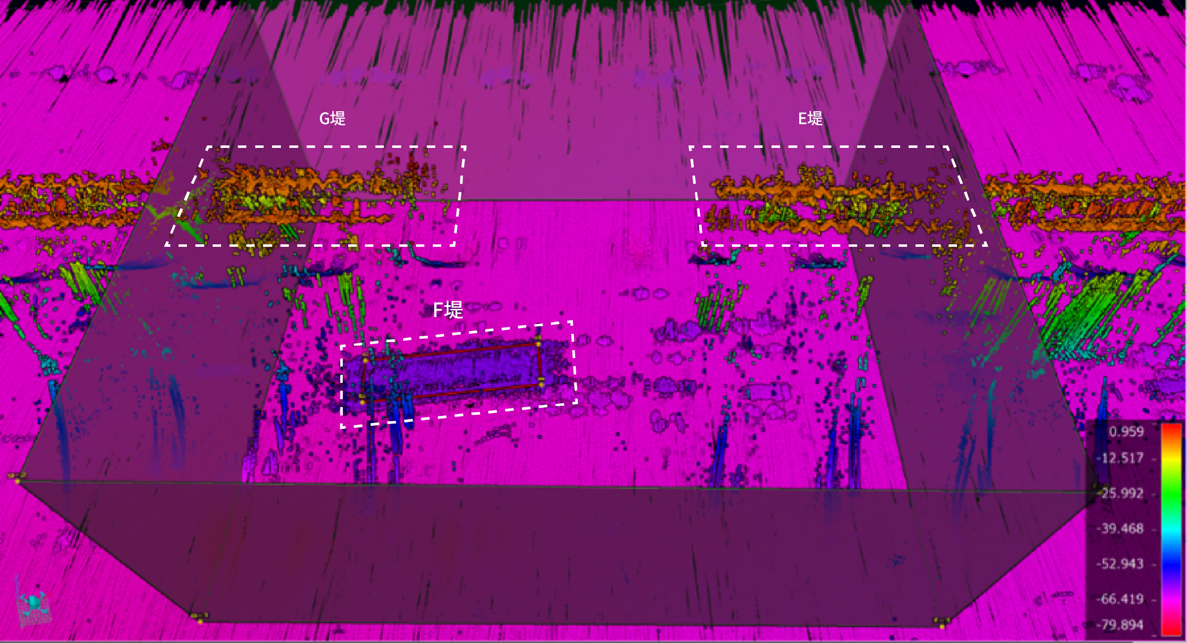 ナローマルチビーム計測で取得した3次元地形データによりF堤位置を特定