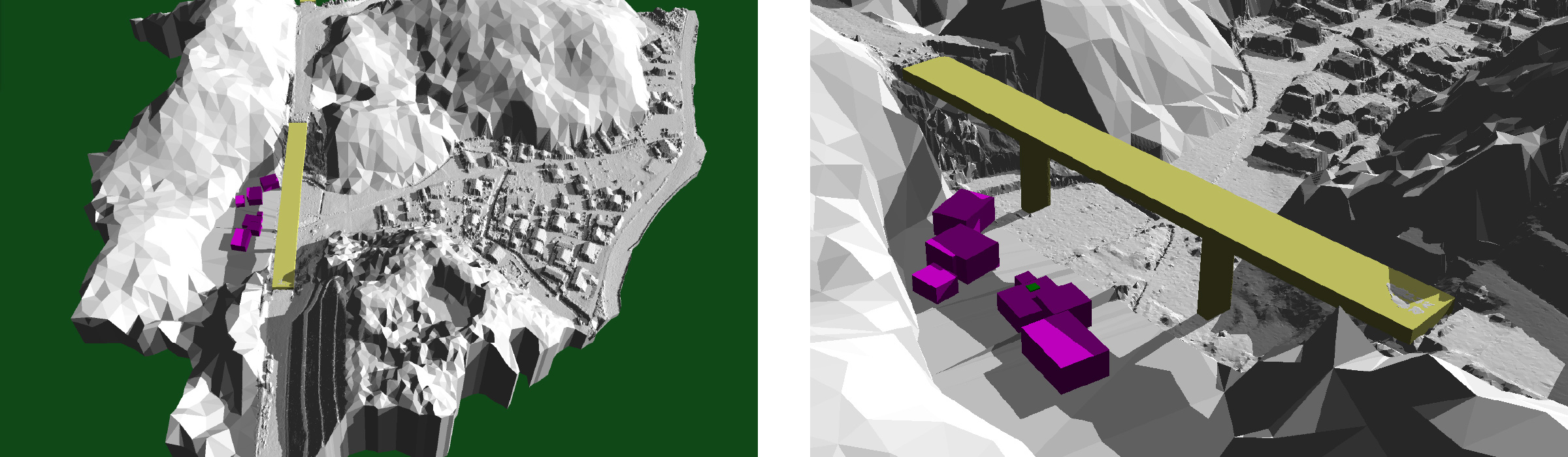 UAVで取得した3次元データを用いて地形モデル(TINモデル*)を作成し日陰を可視化